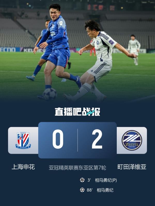 2月11日讯 亚冠精英联赛东亚区第7轮,上海申花主场0-2不敌町田泽维亚。