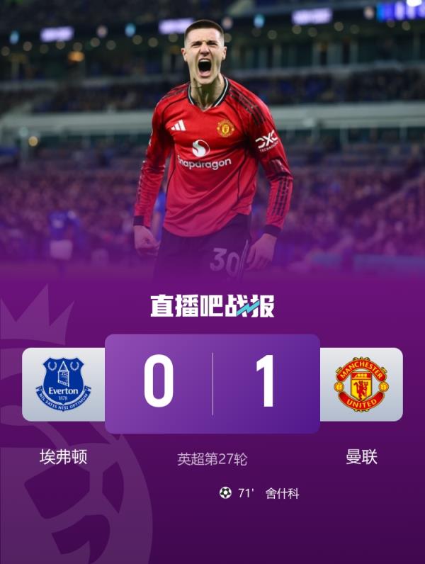 近6轮5胜1平!曼联1-0埃弗顿3分优势居第四 舍什科连场替补破门